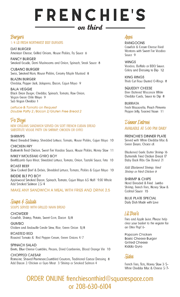 Frenchie's Menu (Update 2025)